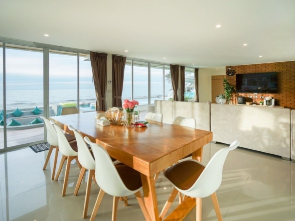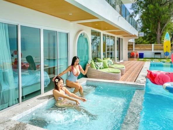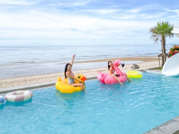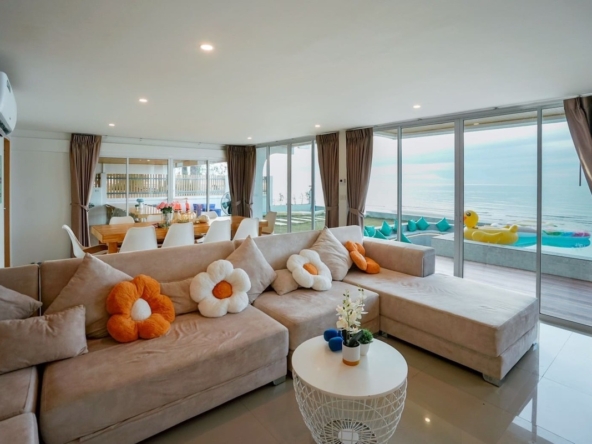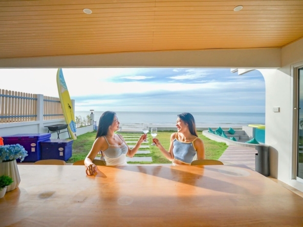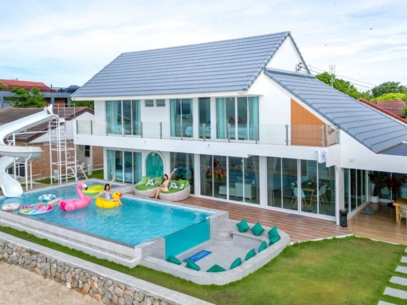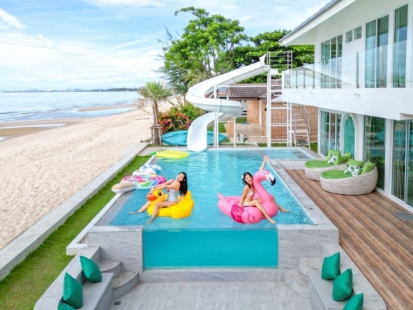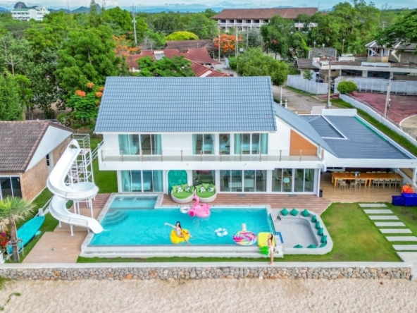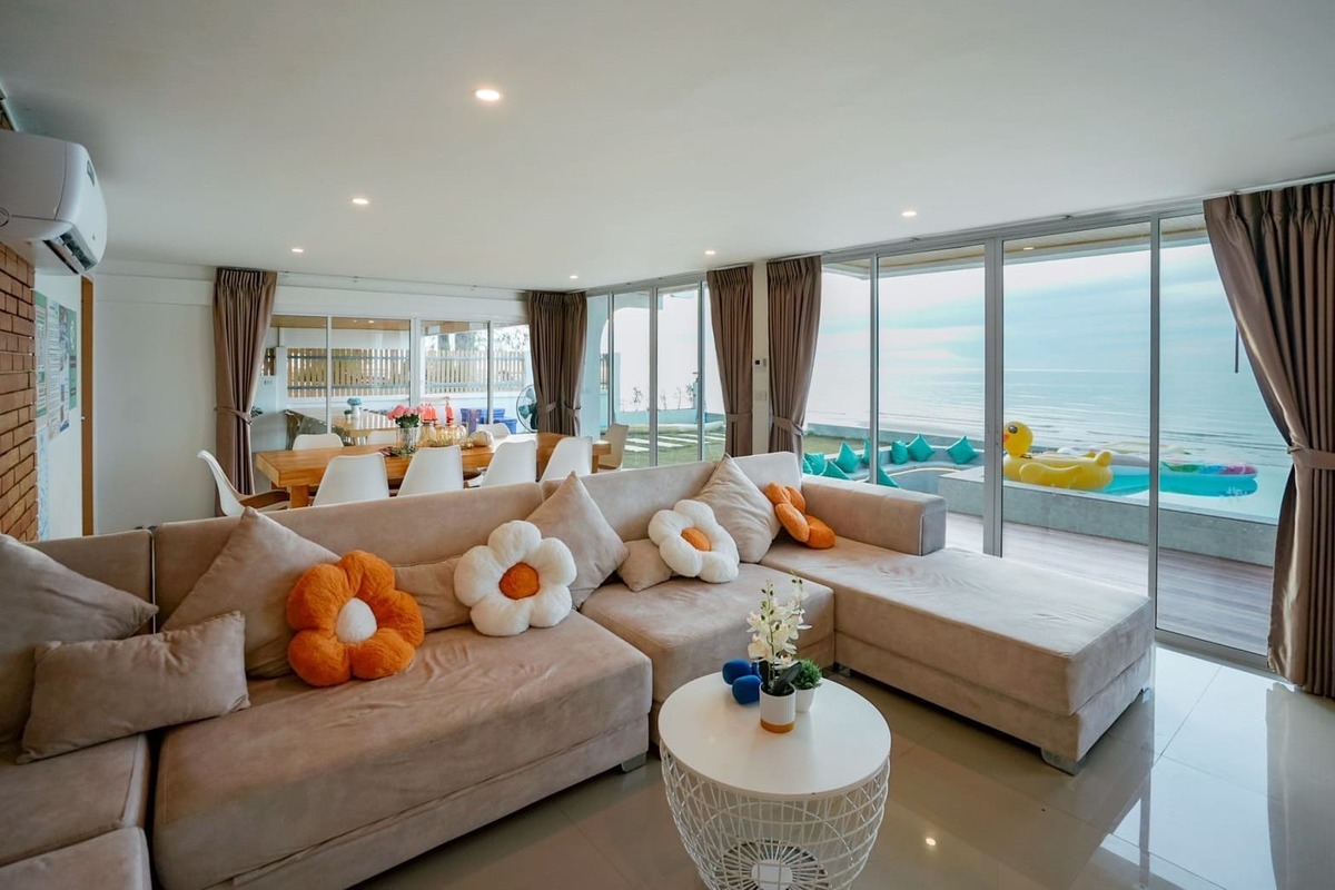 นี่คือวิลล่าติดทะเลชะอำ 7 ห้องนอน ชายหาดหน้าบ้านเป็นทรายขาว ไม่มีโขดหิน น้ำทะเลใส สามารถเล่นน้ำทะเลได้ มีกิจกรรมมากมายคอยให้บริการ แถมในบริเวณบ้านยังมีสนามหญ้าและลานกิจกรรมให้ลูกค้าได้นั่งเล่น นั่งชิลสังสรรค์กันอีกด้วย