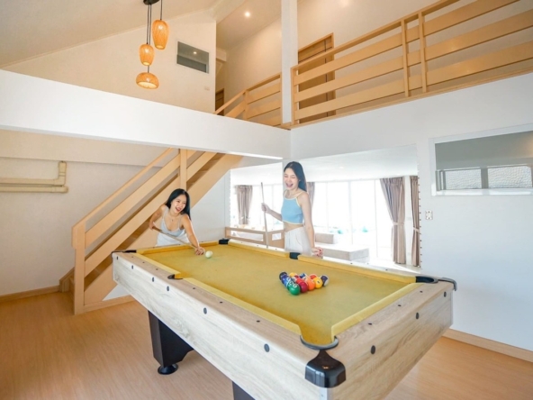 ✔️ ห้องนั่งเล่นพร้อม โต๊ะพูล, คาราโอเกะ, Smart TV