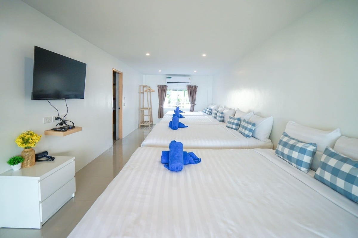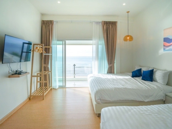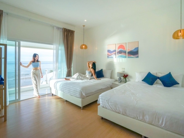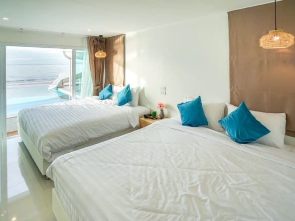 - – ห้องนอนที่ 7 : ชั้น 2 : เตียง 6 ฟุต 2 เตียง (4 ท่าน) (วิวทะเล)