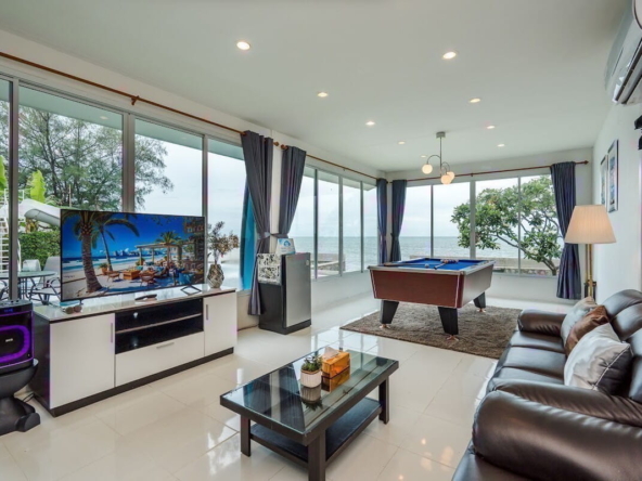 - มีห้องนั่งเล่นใหญ่มองเห็นวิวทะเล