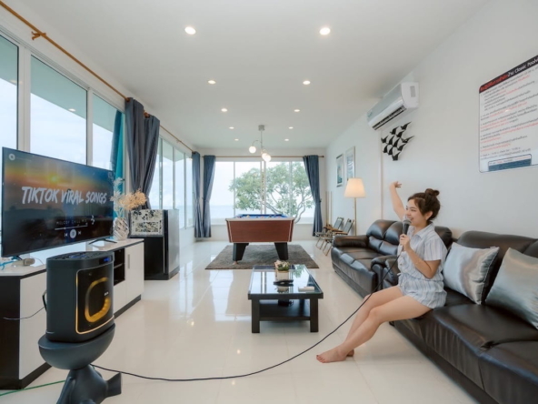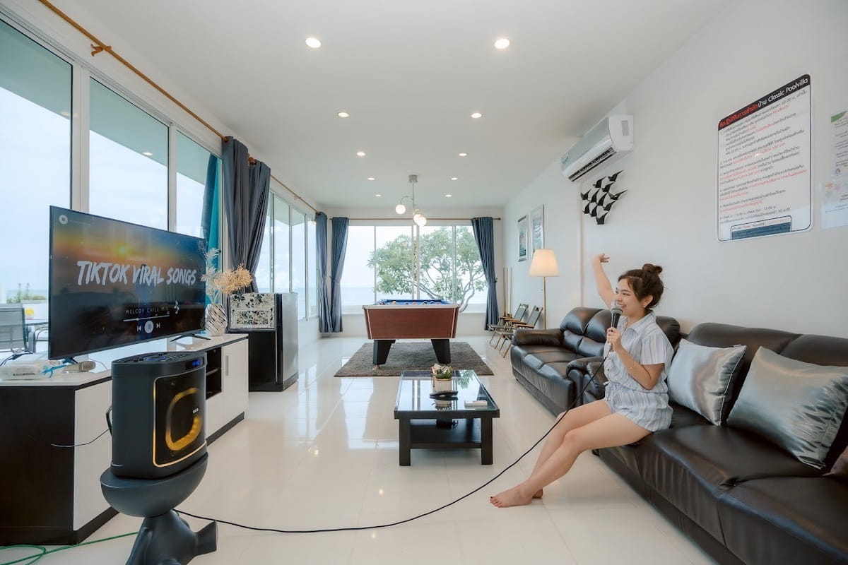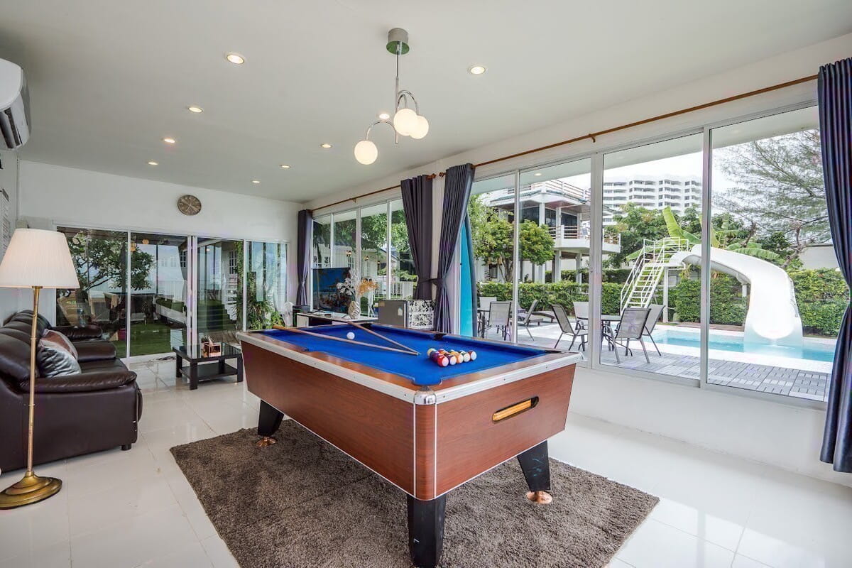 - มีสิ่งอำนวยความสะดวกให้ครบครัน ไม่ว่าจะเป็น : Smart TV, โต๊ะพูล, คาราโอเกะ, Sup board