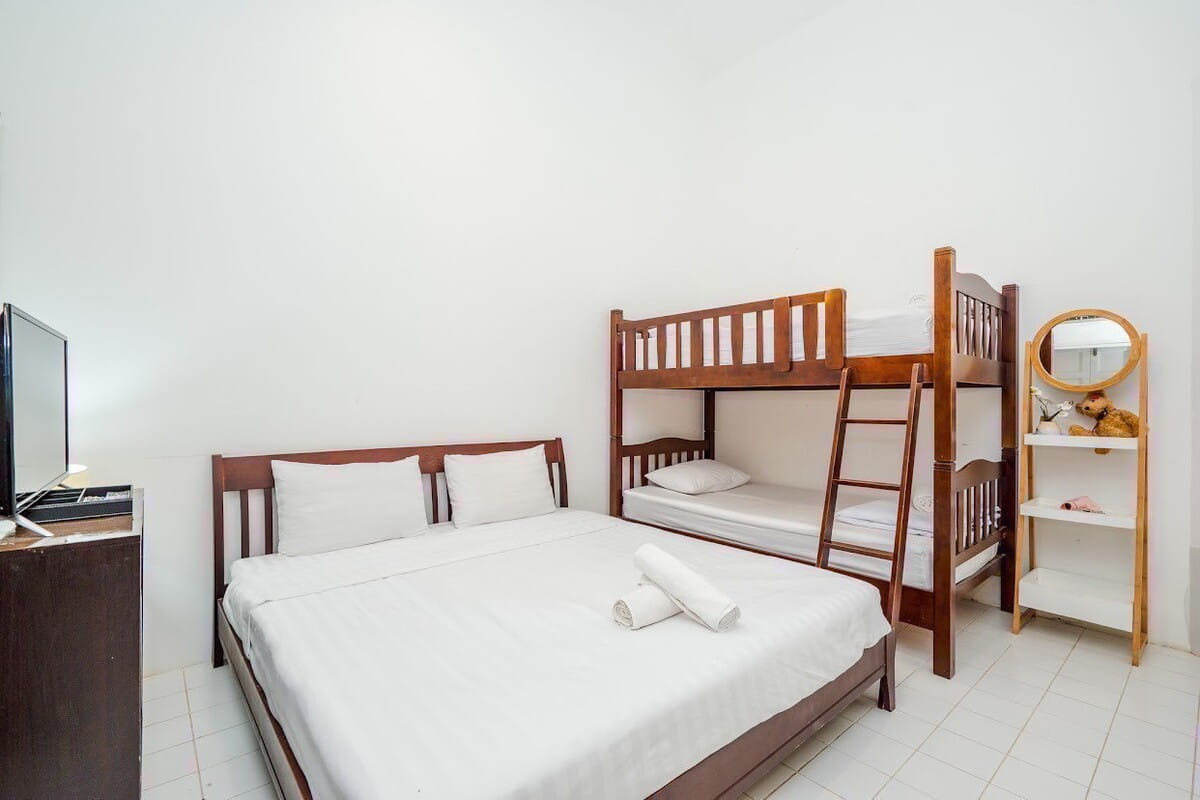 - Room 3 : วิวทะเล : เตียง 6 ฟุต 1 เตียง + เตียงสองชั้น 1 เตียง , 1 ห้องน้ำรวม (4 ท่าน)
