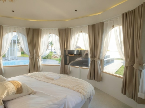 วิลล่าหลังนี้มีความเป็นส่วนตัว บริเวณหาดทรายหน้าบ้านกว้าง มีมุมถ่ายรูปเยอะ วิวสวยมากๆ แถมยังมี Butler และ สิ่งอำนวยความสะดวก คอยให้บริการครบครัน